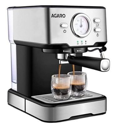 AGARO Imperial Espresso Coffee Maker, Coffee Machine, 15 Bars, With Foaming Milk, Frother Wand for Espresso, Cappuccino, Latte and Mocha, Steam Espresso Maker For Home, Adjustable Milk Frothing and Double Temperature Control System, Stainless Steel, 1100W.