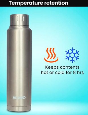 AGARO Regal Stainless Steel Vacuum Flask 750 ML, Double Walled Vacuum Insulated, Copper Insulated, 304 Grade Inner and Outer Stainless Steel Crafted, Leak Proof, Hot and Cold up to 8 hrs, (Silver).