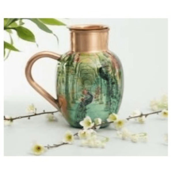 An apple-shaped printed copper jug for water is a unique and stylish addition to any kitchen or dining room. This charming vessel combines the natural beauty of copper with a playful and whimsical design.