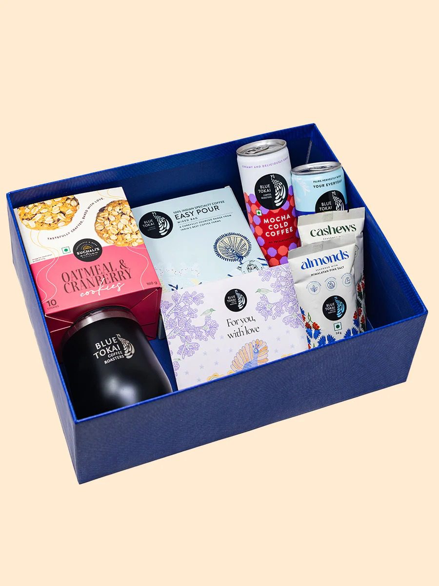 Manifest in a beaming smile and eyes sparkling with delight, silently whispering “thank you for all the love!”… the unique joy of receiving a thoughtful present is what this coffee gift hamper captures.
