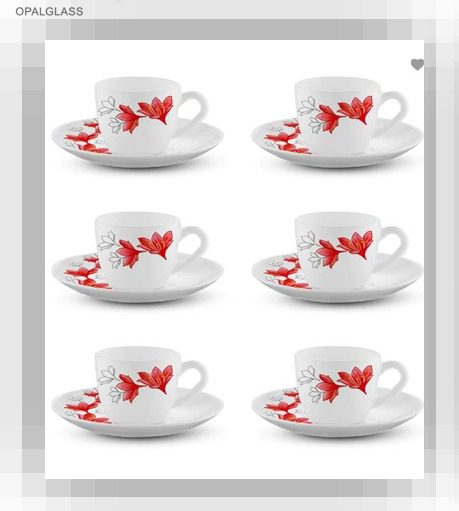 Larah Ruby Cup n Saucer Set of 8 By Borosil