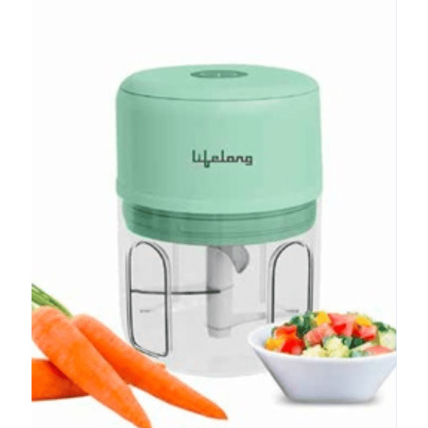 Lifelong USB Rechargeable Wireless Electric Chopper, 30 Watts with Stainless Steel Blades, 250ml (Green)