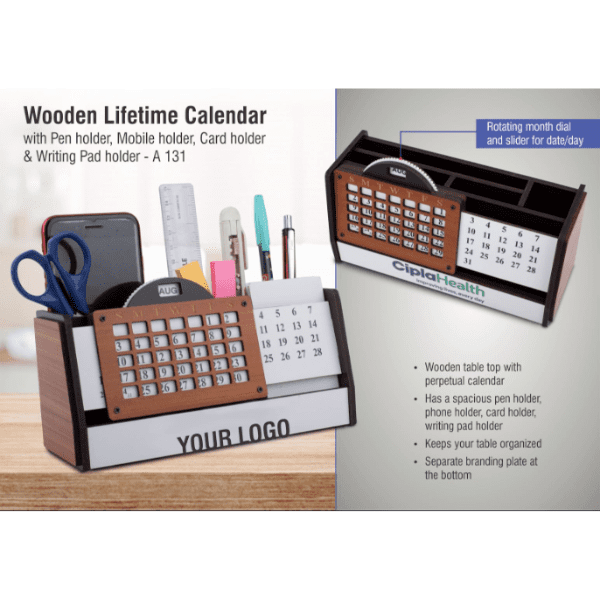 / Wooden Lifetime calendar with Pen holder, Mobile holder, Card holder and Writing Pad holder