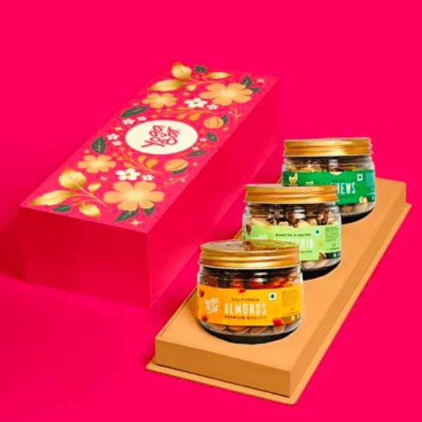 75 gms- almonds, 75 gms- cashew, 75 gms, pistachios.